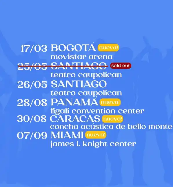 Según lo publicado por la propia Floricienta, la parada en Caracas será el 30 de agosto, en la Concha Acústica de Bello Monte.