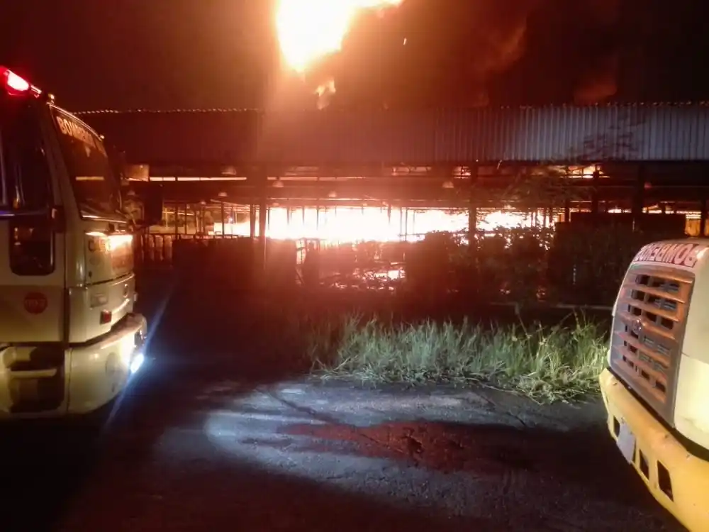 El fuego que inició en el área de desperdicios presuntamente se habría propagado hacia los galpones de materia prima