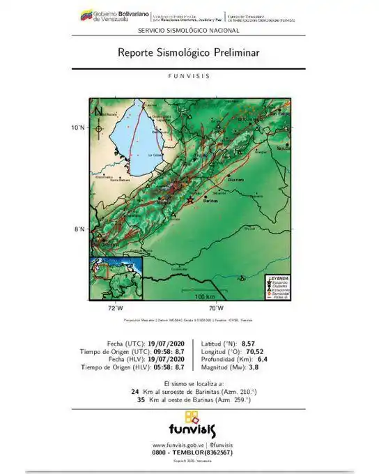 Funvisis reporta sismo de magnitud 3.8 al suroeste de Barinitas