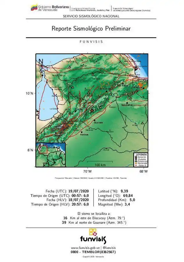 La Fundación Venezolana de Investigaciones Sismológicas (Funvisis) informó desde el sábado hasta la madrugada de este domingo el registro de sismos mayores a 3.0