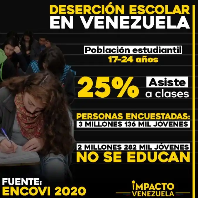 De acuerdo con la encuesta ENCOVI 2020 emitida por la UCAB, estimó que solo el 25% de los jóvenes estudian una carrera universitaria.