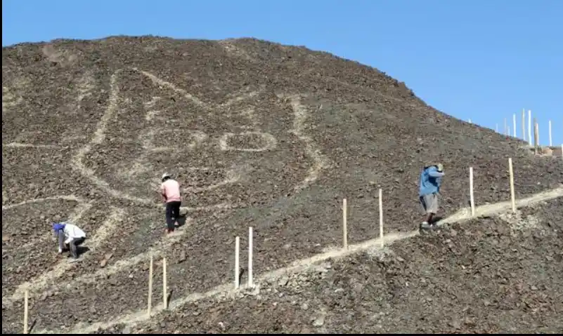 Las nuevas líneas arqueológicas con forma de ‘gato’ fueron visualizados en Nazca, Perú.