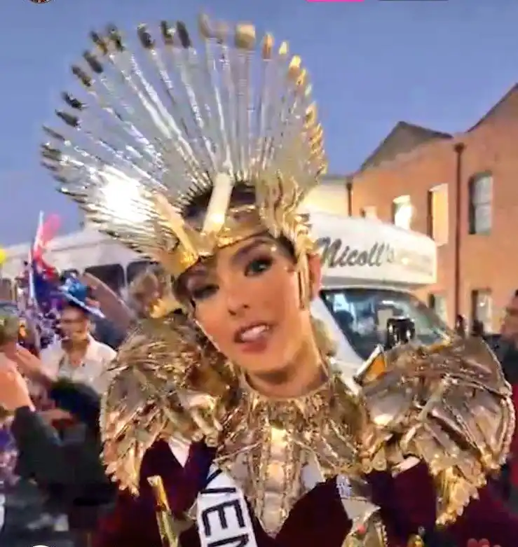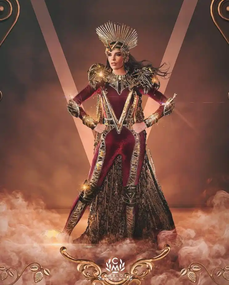 “Heroína Vinotinto» se denomina el traje típico de Amanda Dudamel y con el cual representó a Venezuela en el reconocido desfile de Mardi Gras 2023 en New Orleans, Estados Unidos y con el que engalanará el Miss Universo.