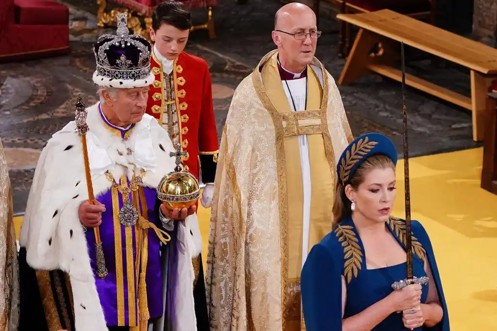El arzobispo de Canterbury, Justin Welby, líder espiritual de la Iglesia de Inglaterra, colocó sobre la cabeza del monarca de 74 años la corona de San Eduardo, que no se había utilizado desde la coronación en 1953 de su madre, fallecida en septiembre.