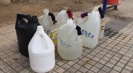 Decenas de visitantes este 2 de noviembre llevaban consigo pimpinas, botellones de 5 litros o tobos con agua, pues la escasez de este servicio es a todo nivel.