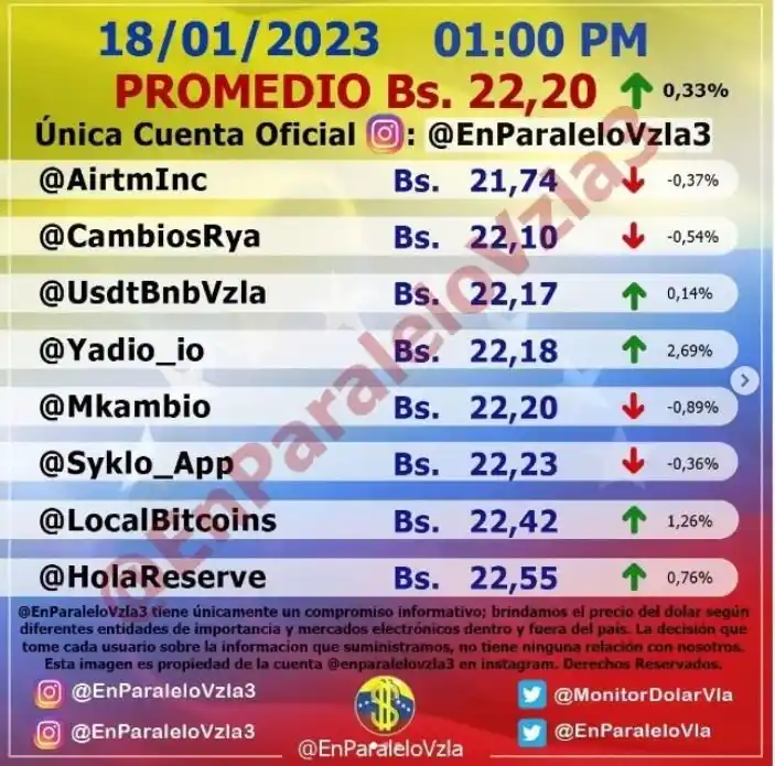 Mientras que en la tarde se ubicó en Bs. 22,20, según publicó @EnParaleloVzla en Instagram.