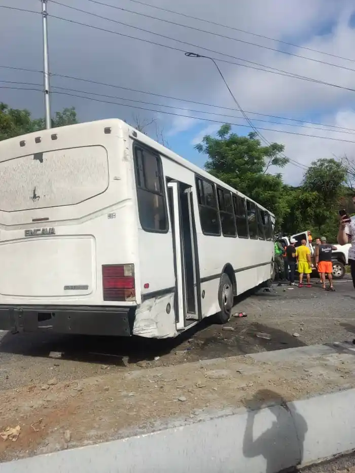 Cerca de las 8.30 de la mañana de este domingo se registró un accidente vial en la autopista Caracas – La Guaira, cuando un autobús Encava color blanco, saltó la isla e impactó contra una camioneta Chevrolet Silverado.