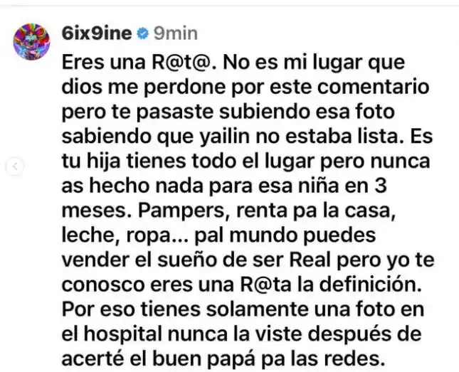 En principio, fue un comentario del rapero estadounidense 6ix9ine, en una publicación de Anuel AA en la que compartió la fotografía de su hija menor, producto de su relación con la cantante dominicana, , Yailin ‘La Más Viral’, la que desató esta guerra entre los tres.