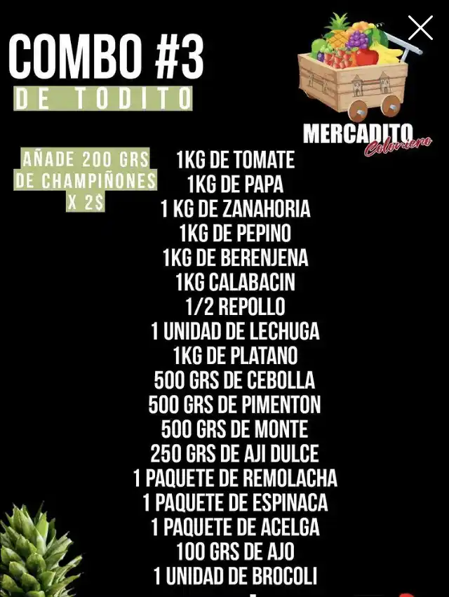 Dan opciones como el combo sopero, el de todito (vegetales, tubérculos y monte) y combo de frutas.