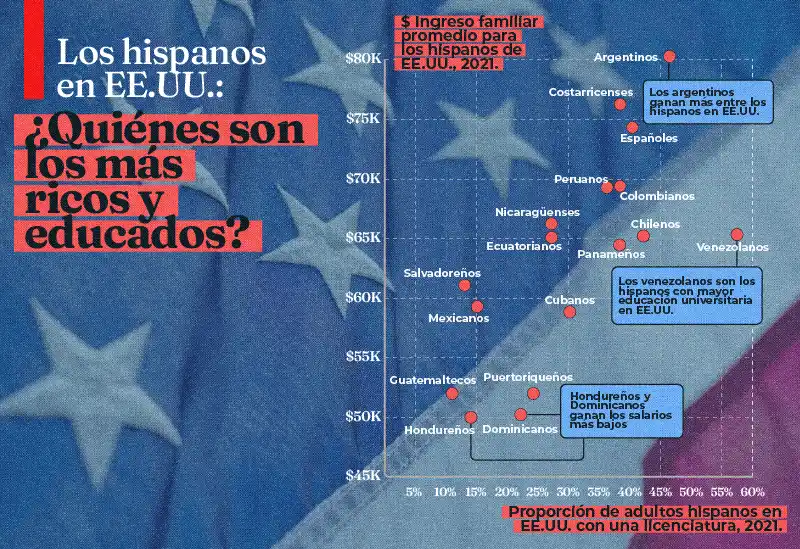 Según los datos oficiales de la Oficina del Censo de Estados Unidos, este país ha recibido a más de 60 millones de migrantes latinos y, dentro de esta enorme comunidad, algunas nacionalidades superan a otras en cuanto a la formación profesional e ingresos que no necesariamente están relacionados.