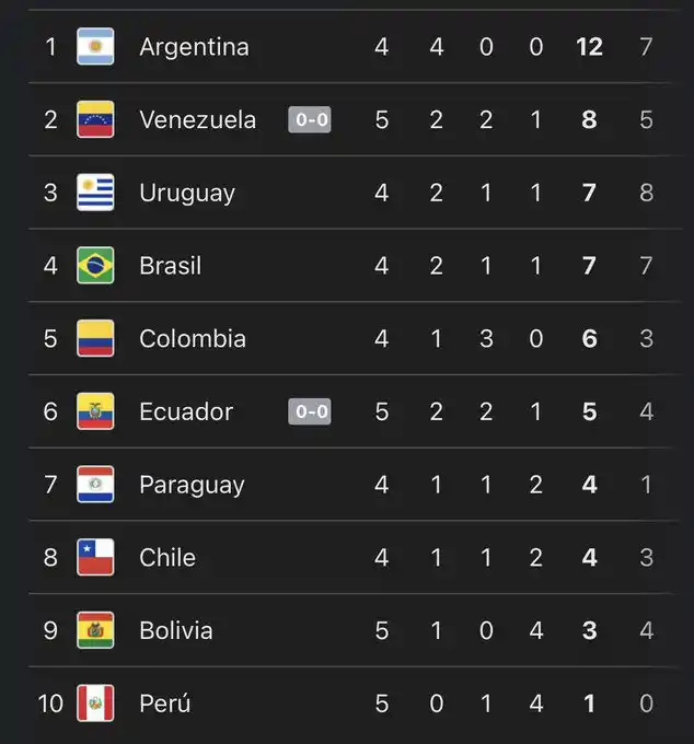 Así la Vinotinto sube temporalmente, con 8 puntos, al segundo puesto en solitario de la tabla de clasificación, esperando los resultados de sus rivales directos: Uruguay, Brasil y Colombia. Mientras Ecuador llega a los 5 puntos.