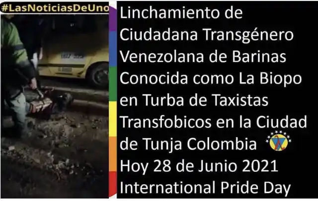 Una turba agredió brutalmente a una mujer trans venezolana en Tunja, Colombia. Tal fue la agresión que al poco tiempo de ingresar al centro de salud falleció. El caso fue calificado de transfobia paradójicamente Día Internacional del Orgullo LGBTIQ+.