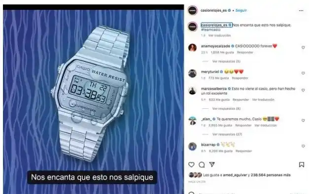 «Nos encanta que esto nos salpique. #teamcasio», fue la descripción que la marca eligió para compartir una fotografía de su reloj más vendido: el CASIO A168 plateado.