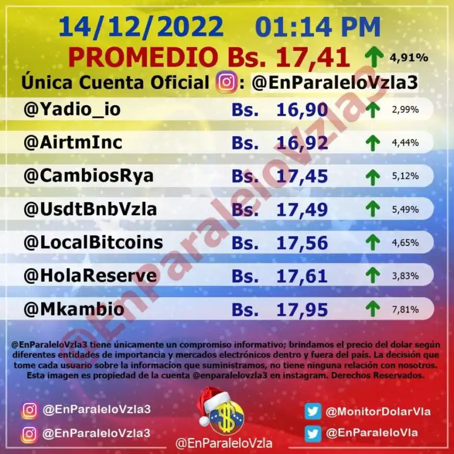 Entretanto, el dólar oficial del el Banco Central de Venezuela (BCV) se encuentra en Bs. 14,76.