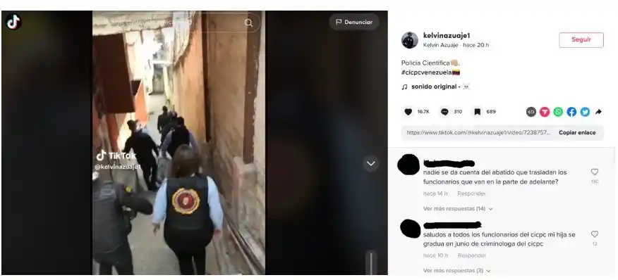 El presunto funcionario, que se identifica como Kelvin Azuaje, posee diversas publicaciones en su cuenta sobre su participación en operativos de la policía científica, en los que posa con armas largas y cortas, así como en recorridos por diferentes zonas populares.