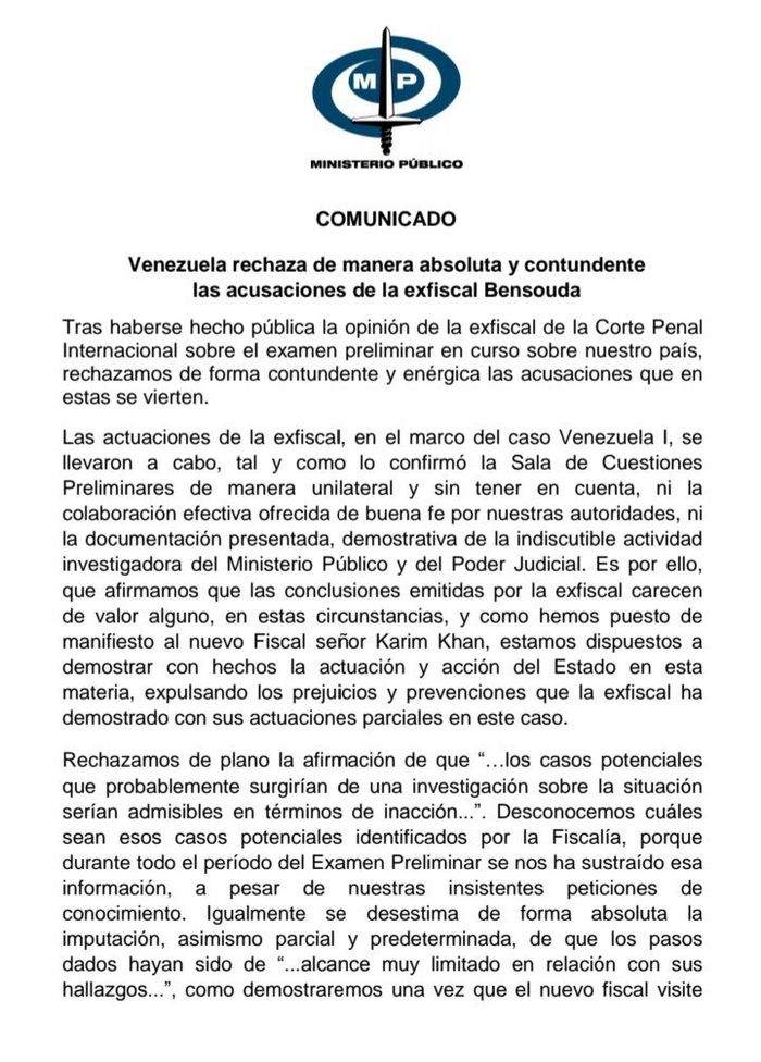 ¡LES DOLIÓ! Por estas razones el fiscal de Maduro rechaza el informe de la CPI (+Comunicado)
