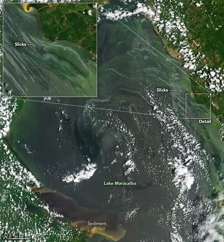 “El petróleo se está derramando de muchos oleoductos sumergidos y envejecidos que no se mantienen, en su mayoría ni siquiera están mapeados”, dijo Frank Muller-Karger, un científico marino de la Universidad del Sur de Florida que ha estudiado el lago con datos MODIS.