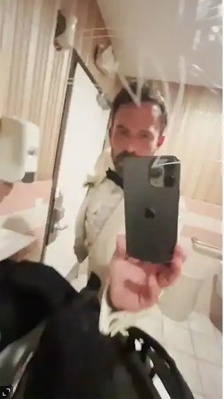 Affleck complementó a su novia con un estilo perfecto de Las Vegas, luciendo un esmoquin blanco con pajarita negra y pantalones a juego. «Y este fue mi vestuario de boda», dijo en otro video, después de vestirse en un baño público con un grafiti tallado en el espejo.