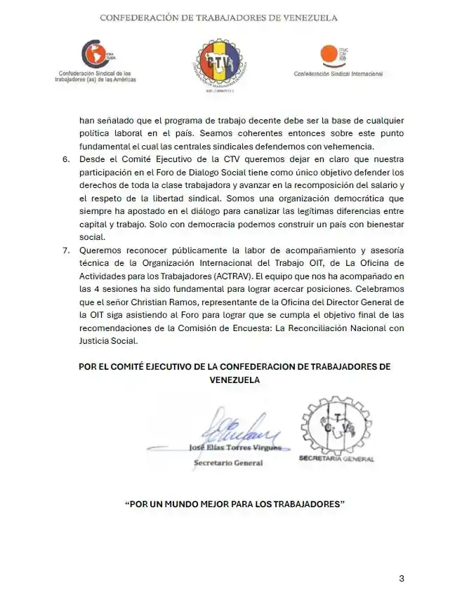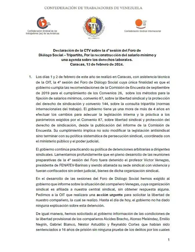 Declaración de la #CTV sobre la 4a sesión del Foro de #DiálogoSocial – #Tripartito, Por la reconstrucción del #SalarioMínimo y una agenda sobre los #derechoslaborales. pic.twitter.com/Ou9iRvzwiJ