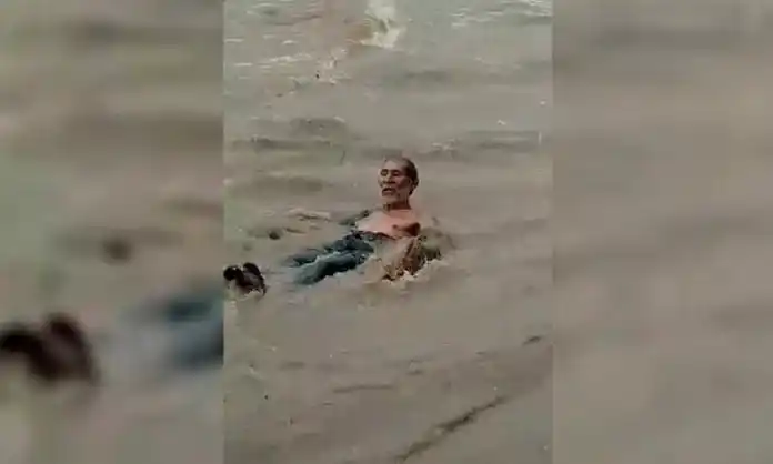 El ciudadano se había lanzado en medio de la calle y fue llevado por la corriente