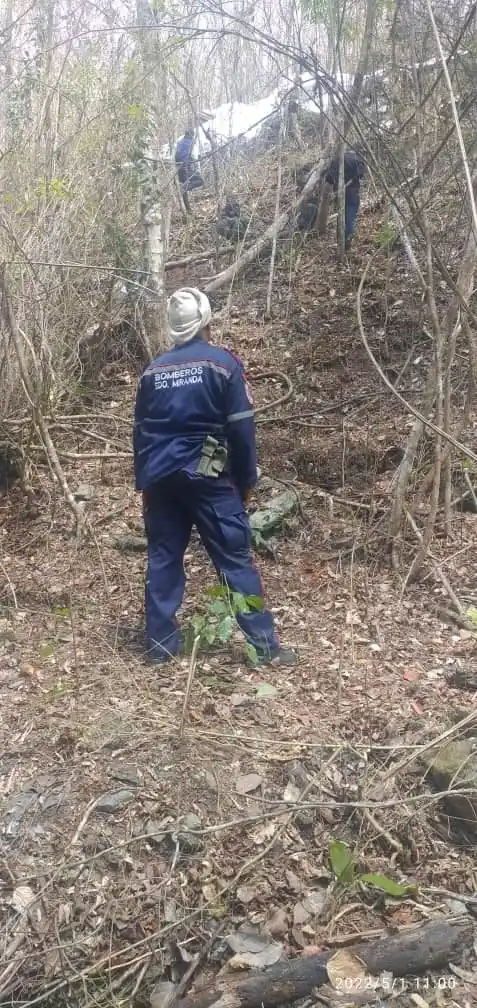 Equipos liderizados por los Bomberos de Miranda, llegan a los restos de la nave, después de que en horas de la mañana de este domingo fuesen avistados los restos de la aeronave, durante una verificación que hicieran de la zona por vía aerea.