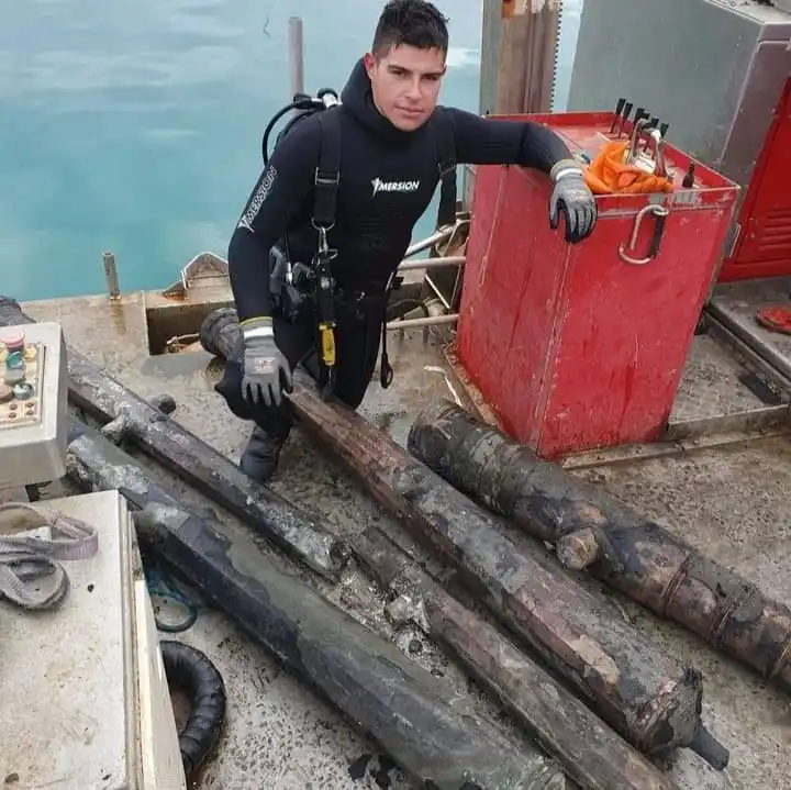 El buzo venezolano procedió a hacer la extracción de estos objetos cilíndricos, los cuales cuentan con figuras y estampados en metal, finamente elaborados, por lo que fueron sometidos a estudios arqueológicos.
