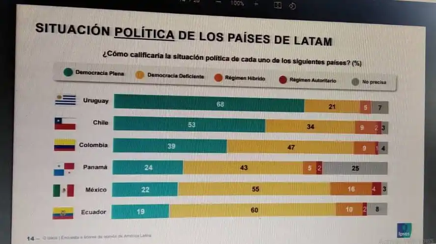 Agrega que, «significativamente, Uruguay y Chile son los dos únicos países entre los evaluados que la mayoría considera democracias plenas».