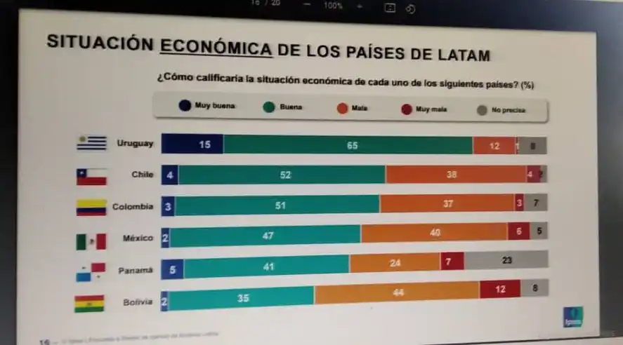 «Uruguay es el país con la mejor evaluación económica de la región y el país donde más encuestados cree que la inflación se reducirá en los próximos 12 meses», destaca el sondeo.