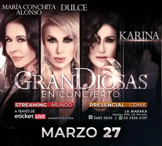 María Conchita Alonso limó las asperezas que tenía con el productor y volverá a unirse a Grandiosas. Se trata de un espectáculo en el cual compartirá tarima con Karina, Dulce y Jeanette. El mismo se presentará en vivo en un teatro de la Ciudad de México, el 27 de marzo. El 10 de abril, harán un streaming para el resto del mundo.