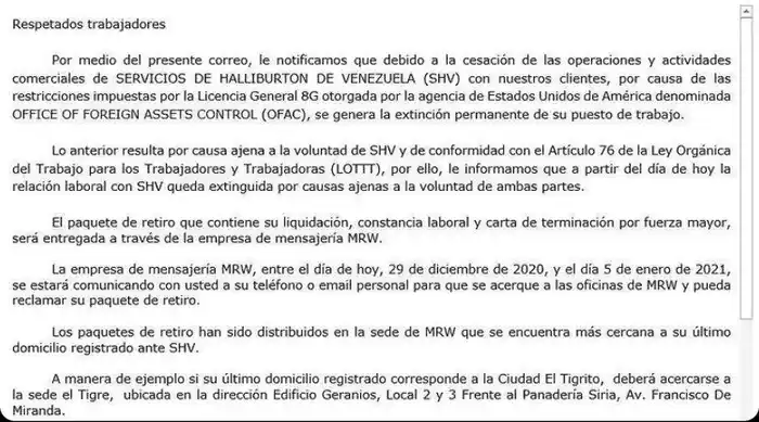 Medida afecta a 400 trabajadores: HALLIBURTON habría cesado operaciones en Venezuela +(Carta)