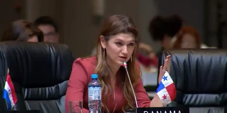 En su intervención, la ministra de Relaciones Exteriores de Panamá, Erika Mouynes compartió uno de los testimonios de los migrantes venezolanos que han cruzado el tapón para huir de la crisis que instauró el chavismo.