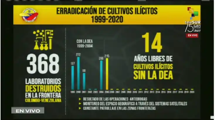 Precisó que en los últimos años, Venezuela ha incautado 773 toneladas de drogas, lo que representa un aumento del 44%, desde que se expulsó a la DEA del país.