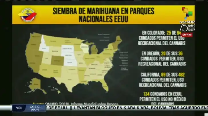 También aseguró que las bases militares de EE.UU. se encuentran donde están los mayores campos de cultivos de marihuana y de coca.