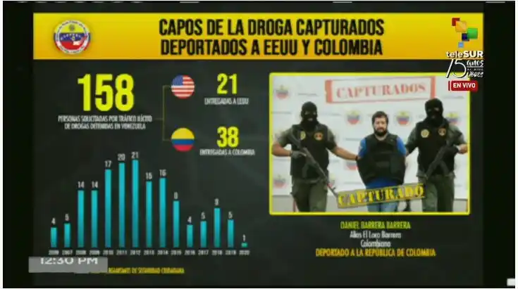 Informó que en Venezuela se han detenido 158 capos del narcotráfico, 21 de ellos fueron entregados a EE.UU. y 38 a Colombia. «También hemos realizado operaciones conjuntas con oficiales colombianos para la captura de capos».