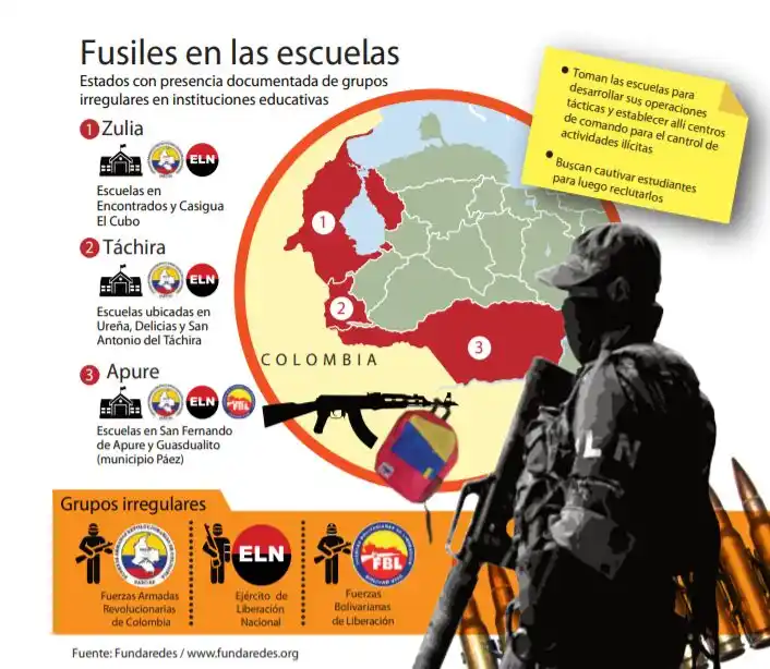 Los constantes peligros y vulneraciones que enfrentan las poblaciones venezolanas fronterizas por la presencia de grupos guerrilleros de origen colombiano, alcanzan a las instalaciones educativas que son utilizadas como centros de adoctrinamiento e ideologización.