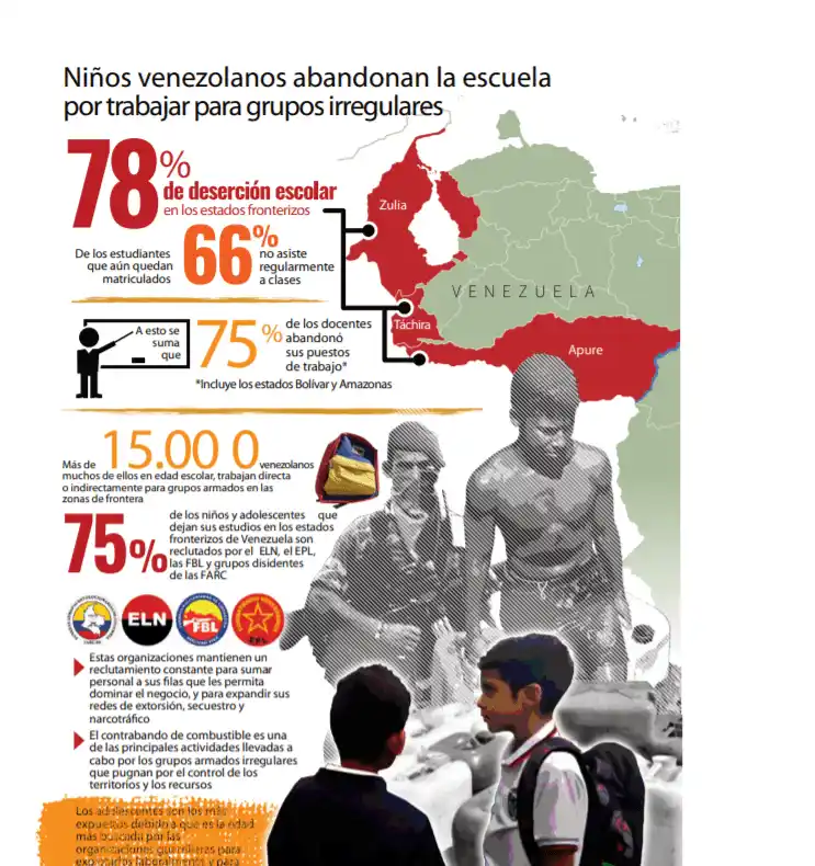 La ONG informó que mediante una fundación denominada “Amigos de la Escuela”, la guerrilla de origen colombiano ingresó en centros educativos rurales, de al menos cinco municipios fronterizos del estado Táchira: Bolívar (San Antonio), Pedro María Ureña (Ureña), Junín (Rubio), Capacho Viejo (Libertad) y Rafael Urdaneta (Delicias), para entregar útiles escolares, regalos y alimentos a los menores.