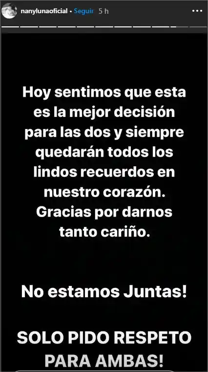 Incluso, dijo que ambas se retirarían un tiempo de las redes sociales y que mantendrían su relación en la intimidad.