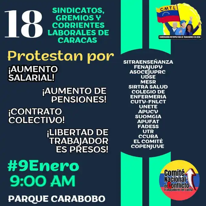 Trabajadores de distintos gremios salen este 9 de enero a la calle en Caracas y otras ciudades del país exigiendo mejoras