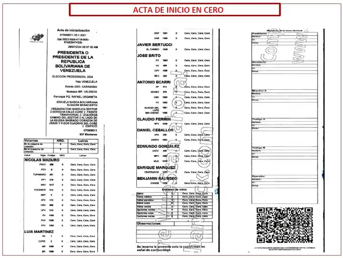 - La presentación de «actas cero», la que se imprime al inicio de la votación, como si fueran actas finales.