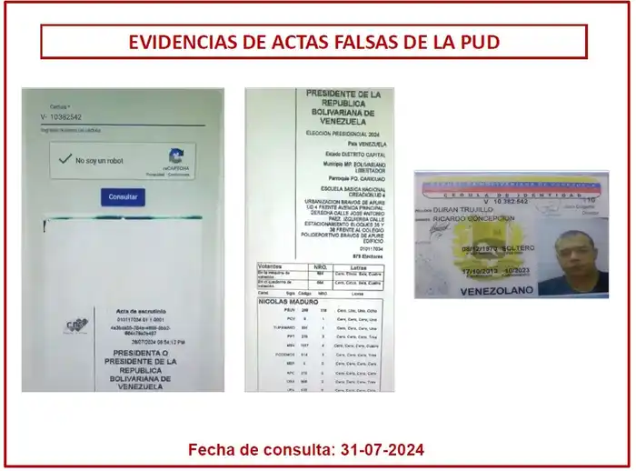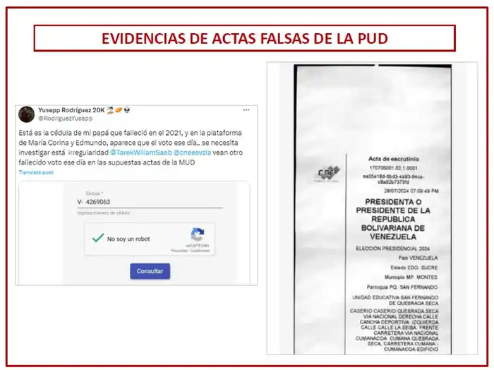 Esto, a su juicio, lo demuestra con capturas de las actas que presentan detalles objetables.