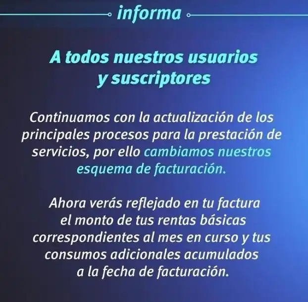 Explicó en un comunicado que ahora el usuario podrá ver en su factura dos montos: el saldo vencido del mes anterior y la deuda que se va acumulando del mes en curso.