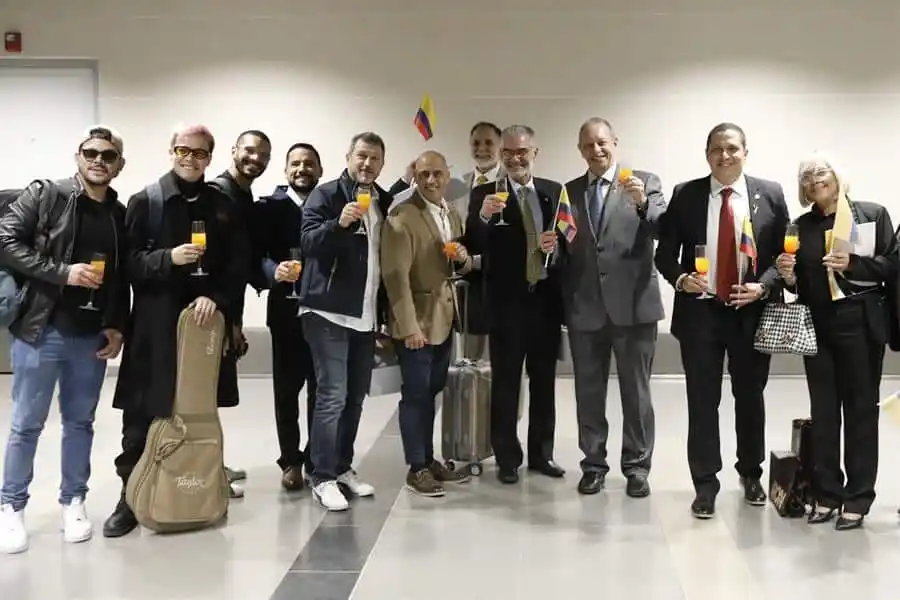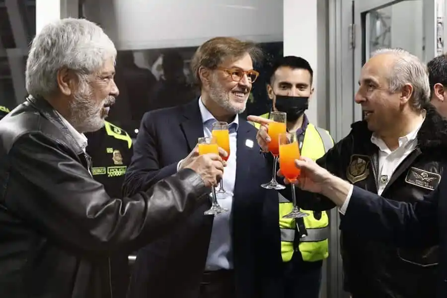 Los ministros de Transporte, Guillermo Reyes, y de Industria y Comercio, Germán Umaña, recibieron a los viajeros en la capital colombiana.
