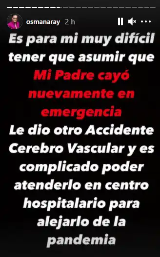 Esta es la segunda oportunidad en dos años en la que el animador solicita ayuda para su padre y por la misma causa. En 2019, el señor Aray sufrió un primer episodio de ACV. Osman regresó a finales de 2020 a Venezuela, precisamente para compartir con su familia; debido a que la salud de su padre se encontraba deteriorada. Para el momento del accidente cerebro vascular, Aray se encontraba en Miami.