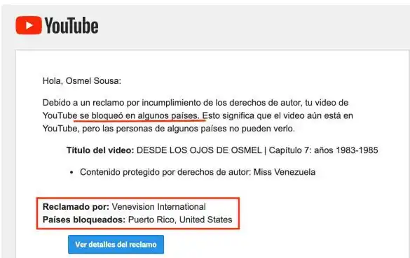 Asimismo, señala que YouTube hace verificaciones y envías notificaciones automáticas cuando se utilizan imágenes de tercero, si estas son positivas no hay problema con subir, en este caso, las del concurso. «Nunca hemos prohibido a nadie que use material del Miss Venezuela», dijo