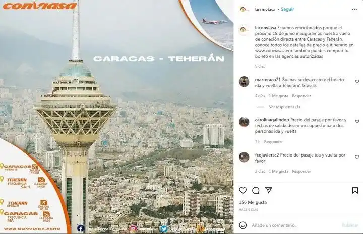 Detalló, que el avión de Conviasa es un Airbus A340-642 con matrícula YV3535. De acuerdo con El Clarín, lo vendieron por la iraní Mahan-Air a la venezolana Conviasa. Lo adquirieron en la última semana y el avión realizó hace apenas dos días su vuelo inaugural hacia la Isla Margarita con 70 pasajeros; entre ellos «influencers provenientes de la República Islámica de Irán”, según reportó la autoridad de aeropuertos venezolana.