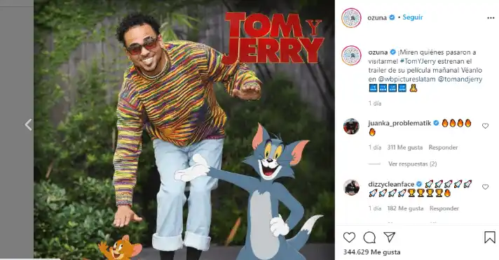 En su cuenta de Instagram el cantante urbano puertorriqueño, Ozuna, siguiere que podría participar en la película de aventuras de Tom y Jerry.