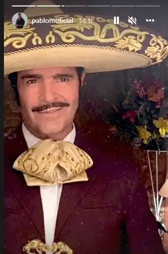 El propio Montero subió a sus historias de Instagram varias fotografías en las que ya se le ve caracterizado como Chente. No solo con el tradicional traje de charro que acompañó a Fernández tanto sobre como bajo las tarimas; sino con gestos como el del labio medio torcido que le era característico.
