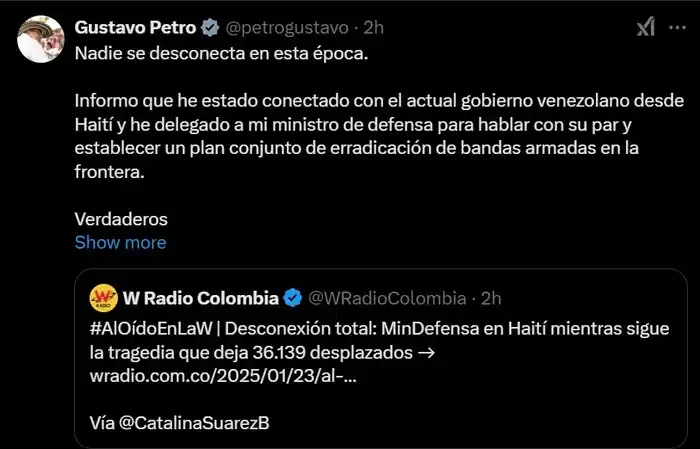 La crisis de violencia en Catatumbo le ha valido una lluvia de críticas al presidente de Colombia, Gustavo Petro, la más reciente por su viaje a Haití u su presunta desvinculación con la situación.