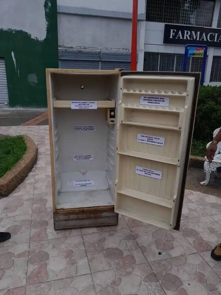 Asimismo, hubo protestas muy particulares, como en Aragua y Portuguesa, donde aparecieron varias neveras viejas y vacías, con letreros que decían: «no más salarios de hambre».