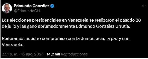González dejó claro en un mensaje en la red social X que las elecciones ya se realizaron el 2o de julio, y el ganador fue él: